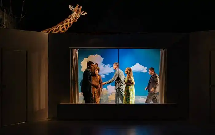 „Tristețe și bucurie în viața girafelor” propune o călătorie emoționantă și ludică prin universul unei fetițe de 9 ani, într-un oraș marcat de crize personale și sociale. Textul lui Rodrigues, tradus și montat pe cele mai importante scene europene, devine, în lectura scenică a lui Irisz Kovacs, un spectacol despre inocență, fragilitate și maturizarea forțată, dar și despre felul în care imaginația poate transforma realitatea. Mai mult decât o poveste despre identitate și inocență, acesta este un spectacol despre cum imaginația devine armă de supraviețuire și instrument de înțelegere a lumii.