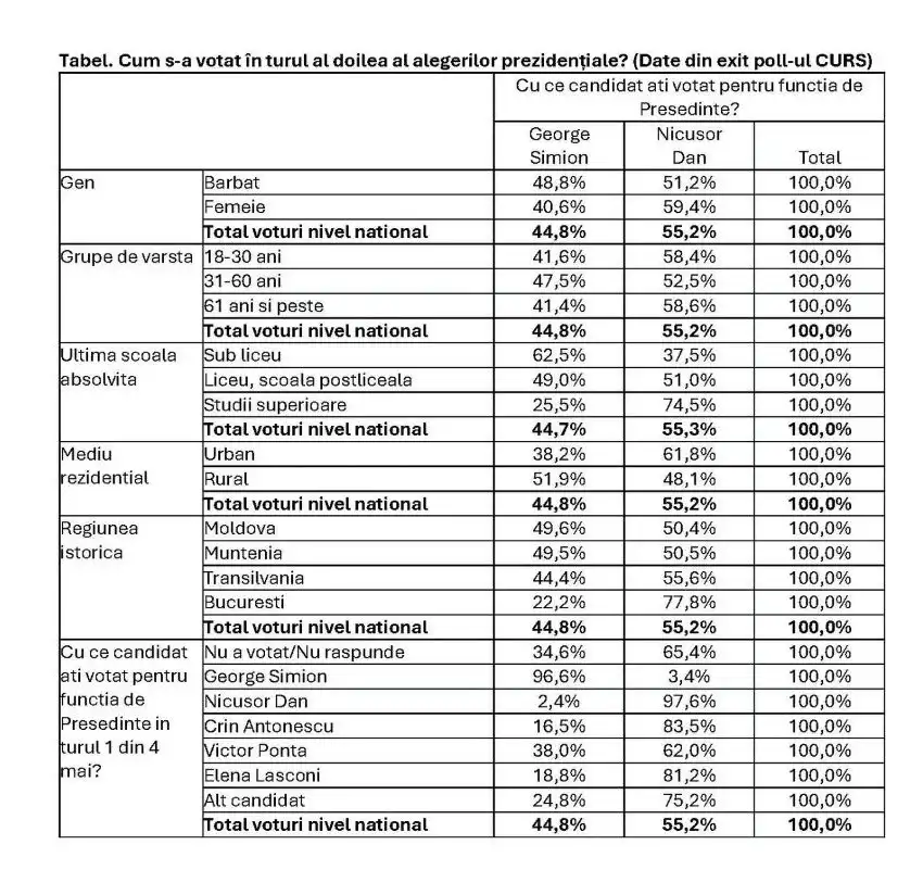 Datele brute, conform exit-poll-urilor și sondajelor din ziua votului, precum și analizele pe cohorte, distribuție geografică, generații, nivel de educație și dinamica votului între cele două tururi de scrutin.