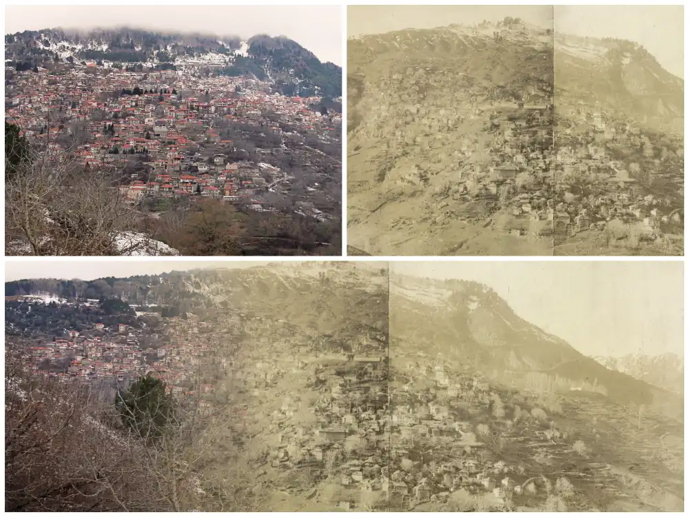 Refacerea fotografiilor a fost nu un exercițiu estetic, ci o metodă de lucru. Să te așezi în același punct, după mai bine de o sută de ani, schimbă complet perspectiva: îți dai seama că diferența nu e doar în ceea ce vezi, ci mai ales în ceea ce nu se mai vede. Spuneam încăpățânare. Unele locuri nu s-au lăsat descoperite ușor, a fost nevoie de timp, răbdare și numeroase reveniri. Vorbim de cel puțin opt ani pentru a reface întreg setul de fotografii cu localități de la 1900 al fraților Manakia.